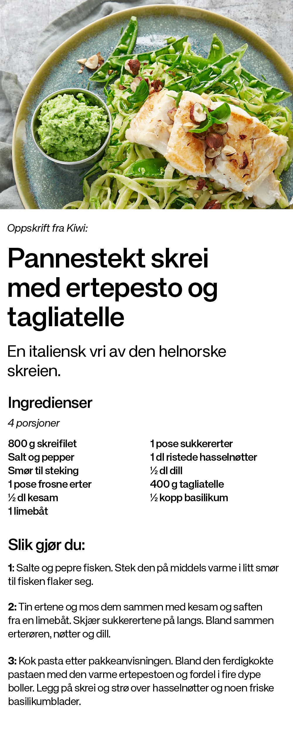 Skrei med ertepesto og tagliatelle